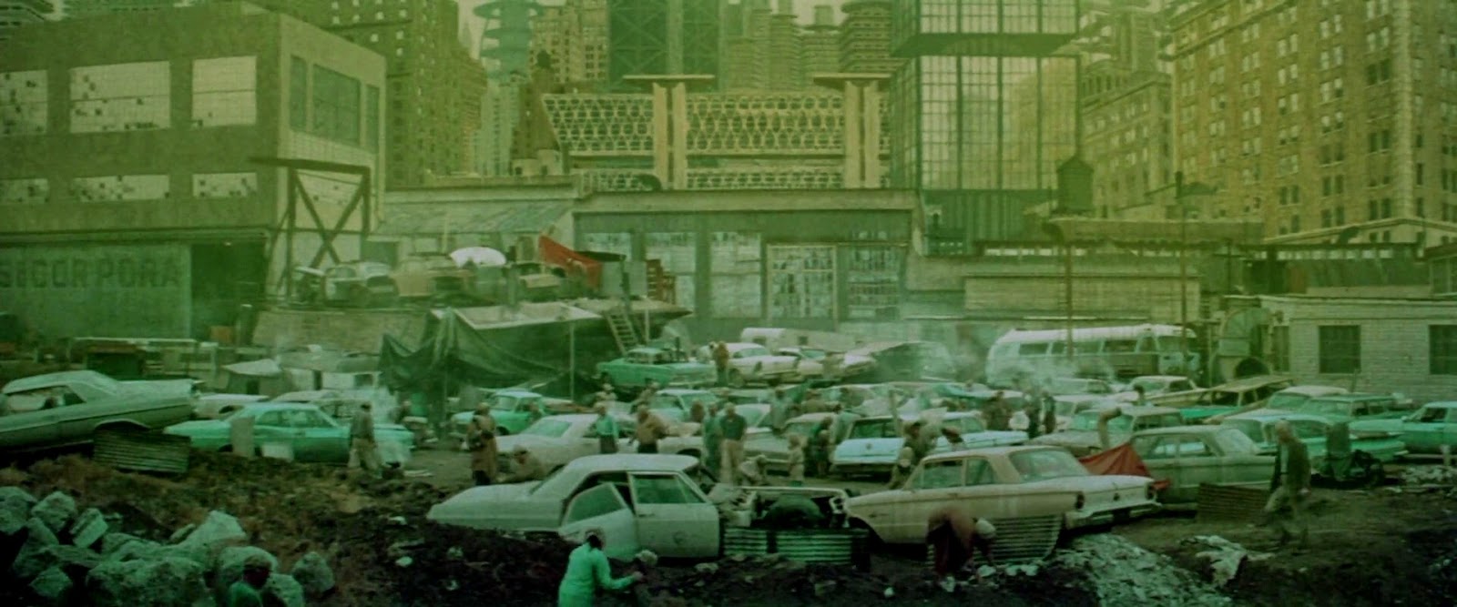 A rendere il tutto ancora più angosciante ci pensano le ambientazioni in una New York notturna e decadente, costantemente avvolta in una nebbia inquinante, in cui la gente stremata dalla fame è ridotta a vivere in dormitori fatiscenti o nelle automobili ormai ferme in strada se non addirittura sulle scale antincendio dei palazzi.