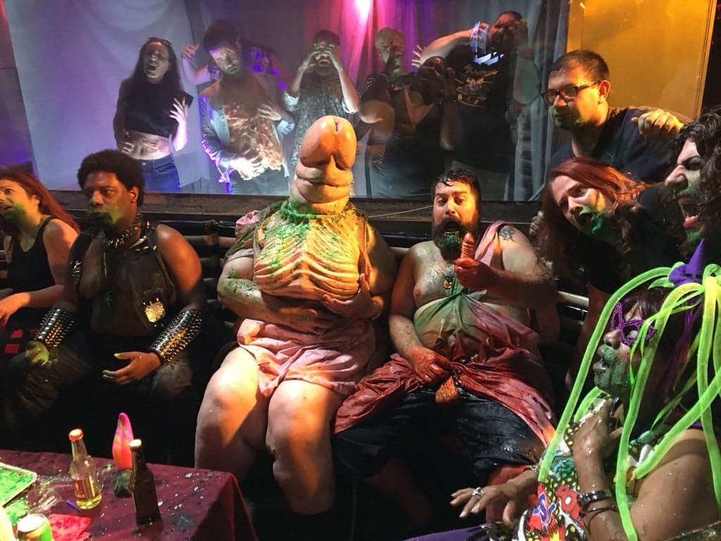 Visivamente, Shakespeare’s Shtstorm* è un incubo technicolor: la fotografia saturata, gli effetti volutamente amatoriali e la recitazione sopra le righe creano un’estetica che è, paradossalmente, purissima nel suo caos. È il linguaggio tromesco portato al suo apice – un cinema di rifiuti che si eleva a dichiarazione poetica. Non esiste una linea narrativa tradizionale: esiste solo un ritmo, un flusso di immagini e di urla, una danza febbrile di carne e fango.
