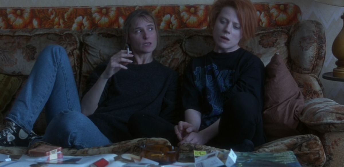 Ma gli spazi cambiano; l’imborghesimento è inevitabile. (L’immobiliare londinese è la chiave di questo dramma tra coinquilini, ed è notevole che l’unica parte parlante significativa del film che non appare in nessuno dei flashback degli anni Ottanta sia un becero commerciante a termine, interpretato da Andy Serkis, che vive in un grattacielo di lusso con vista sul Tamigi). Tagliando avanti e indietro tra un presente degli anni Novanta e un passato degli anni Ottanta, Career Girls ci mostra il modo in cui le idiosincrasie della gioventù sono sussunte nell’equilibrio (più o meno) della personalità adulta – proprio come, per le scene degli anni Novanta, la musica dei Cure lascia il posto ai toni sonori della terra della colonna sonora di Marianne Jean-Baptiste. Le oscillazioni ormonali febbrili sono smussate da uno smooth jazz da cenacolo. Il punk è morto, sacrificato sull’altare dell’età adulta. La pelle si schiarisce, gli spasmi si fermano da soli, senza che tu faccia nulla. Il tempo semplicemente… passa. Anche se le vecchie abitudini riaffiorano ancora, come cicatrici dell’acne, Steadman dà alla voce di Annie meno di un fremito nelle scene degli anni novanta, e Cartlidge rende la sua voce meno muscolosa. Mentre la loro casa al college era buia e sporca come una bettola, con manifesti cinematografici a malapena visibili nella torbida luce blu, le vecchie compagne di stanza si ritrovano nell’appartamento mansardato della trentenne Hannah a Kentish Town, che ha una vista sul giardino e pareti color crema che riflettono la luce naturale.