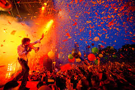 Il film si chiude su una clip da un recente spettacolo dei Flaming Lips – un affare colorato con uomini in abiti da coniglietto, palloni giganti pieni di coriandoli, e un finale in cui il signor Coyne naviga in cima alle braccia tese del suo pubblico in un’enorme bolla trasparente.
