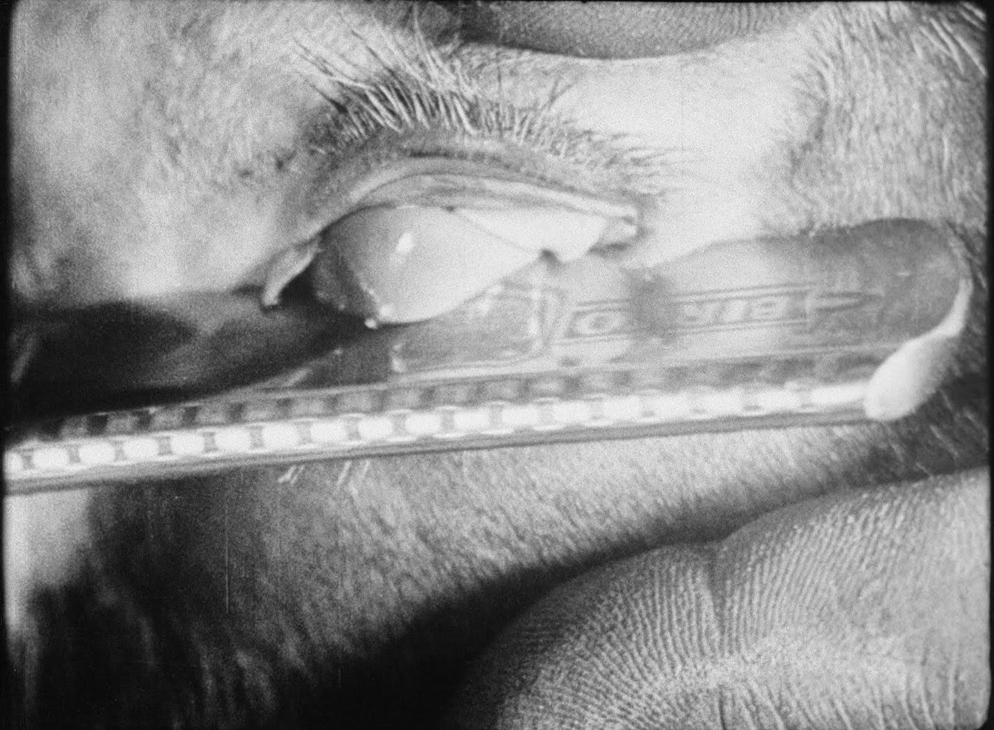 Un uomo (Luis Buñuel) affila un rasoio per radersi; una nuvola lunga e sottile taglia il disco della luna; l’uomo col rasoio taglia l’occhio di una donna. Due amanti (Pierre Batcheff e Simone Mareuil) si cercano con la forza della disperazione erotica. La mano di lui si riempie di formiche, il suo volto sanguina dal piacere, ma per raggiungerla deve trascinarsi dietro due asini putrefatti, due preti maristi, alcune zucche e un pianoforte a coda… Girato da Buñuel con una parte del patrimonio di famiglia, insieme con l’amico pittore Salvador Dalì, il film mostra immagini che “escludono ogni ricorso al razionale” e danno libero corso al sogno e all’inconscio. Presentata a Parigi, l’opera aprì ai due autori le porte del gruppo surrealista che vi lesse in filigrana “un assoluto, disperato appello al crimine”.